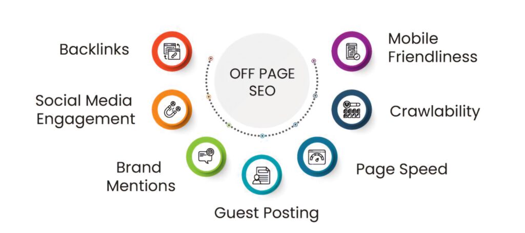 Off-Page SEO: External efforts to improve your site’s authority — such as backlink building, social media engagement, guest posting, and gaining mentions on other trusted websites.